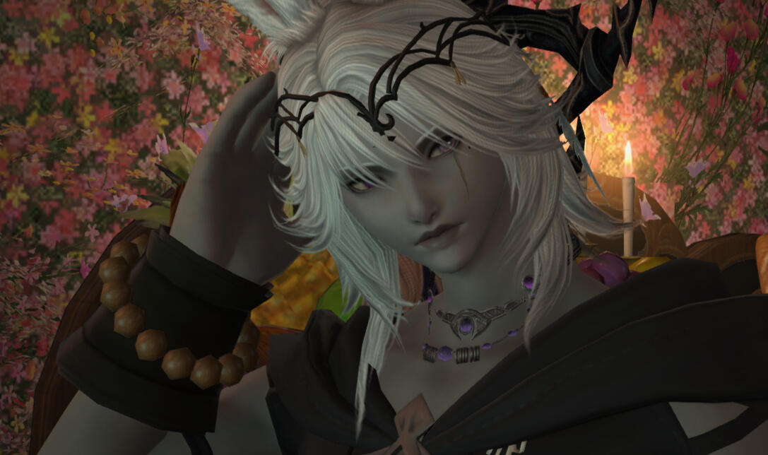 Succubus' life started as normally as any Viera in the village of Isshu. Children lived in the village with their mothers and sisters while their fathers and brothers dwelled deeper into the Wood, keeping everyone safe from harm. Succubus was always a rather introverted child, preferring the company of books over other children his age. He discovered early on that he had quite the talent for the magical arts so he studied and practiced every day. During that time, he was far more happy, far more stable. Though most Viera live out their days thinking little and less of their destinies after their thirteenth nameday, Succubus always hoped he'd be female so he could continue his happy little life in the village reading his books and practicing his magic.Then, during the years of his adolescence when his gender became apparent, he was loathe to discover he is, in fact, a male. It was his own father who would eventually return home for the tri-annual mating season that would bring him into the forest to learn the ways of the Wood-warder. From the day they met, Succubus met every command, every instruction with great resistance. He hoped his rebellion would frustrate his father enough to send him back home or banish him to the outside world, but unfortunately, he would quickly learn where his stubbornness came from.Throughout the next decade or so, his father watched Succubus like a hawk as he endured one brutal training regiment after the next. More than once he was reminded that it was not uncommon for young Viera to die during this rite of passage, and that would be his only escape from his fate. Unhappy though he may have been, he continued to pass trial after trial until he was finally deemed ready to be allowed to live on his own.During the brutal years of training, Succubus came up with the idea of sneaking out of the Wood once he was able to win his freedom, but unfortunately, his father had other plans. Traditionally, Viera men live in complete solitude and do not rely on help from others, rarely ever crossing paths; and yet every single time Succubus came close to the borders of their home, his father would be right there to knock him unconscious and (quite literally) drag him back in. He would spend the next couple of decades playing this little game of cat-and-mouse with his father, but that wasn't the only thing he was up to.One evening, he crossed paths with a strange creature that called itself a Gremlin. It was through the Gremlin that he learned of voidsent and the world they come from. He remembered reading a little about them back home, but everything about the creatures always seemed to be shrouded in mystery. Succubus became fascinated by the voidsent and spent his days and nights learning how to summon them and communicate with them. Of course, most rituals and summonings required some sort of sacrifice, be it man or animal. In his bitterness towards his fate as a Viera man, he started killing not only intruders, but also the women of his village that sought to leave the Wood for independent lives in the wider world. Most of the time, their bodies were utilized for summoning Succubi for him to use for temporary relief of loneliness (though it meant little to him should the rituals ever fail).Unfortunately, the combination of suffocating solitude and extended voidsent contact would contribute to his horrifically deteriorating mental health. The sounds of disembodied voices became more commonplace for him and he grew increasingly apathetic towards everything and everyone around him. During his 51st winter, after several years of not attempting an escape, he crossed paths with his father who spoke to him of a troubling rumor of strange monsters roaming the Wood and killing their women. As he tried to play dumb, he could hear voices telling him he needed to kill his father in order to be free of the Wood's fetters.It wasn't until a few days later when he would try his first escape attempt in years that he finally got the chance. As per usual, his father was right there ready to take him back, but Succubus would not be taken unawares that time. He fought his father as deafening voices demanded "Kill him! Kill him and rip our freedom from his lifeless corpse!" until he at last managed to burn the man into a smoldering heap. As a reward for finally destroying that which withheld his freedom, the creatures of the void gifted him with new assets; sharpened teeth and claws, pointed horns, a dark horse to serve as his mount, and once-silver hair dyed black just like his father's (both to welcome him to the dark, and to subtly punish him every time he looked in the mirror, reminding him of what he had to do to achieve his dream).Now free of his duty as a Wood warder, he would spend the next two decades wandering the lands of Ilsabard until the fires and noise of war became too much for him to deal with. Succubus eventually made the pilgrimage to Eorzea, figuring that if the Empire couldn't claim it after so many years, that it must have been safer than where he came from. Ironically, he found himself drawn to the Twelveswood and chose to wander on the outskirts of society alongside the Moon Keepers and Duskwights.A memorable moment during his first years in the Twelveswood was during one of his journeys when he stumbled across an Elezen girl of roughly sixteen summers. She sorrowfully explained that she was separated from her parents during their travels and she needed gil for a chocobo porter home. Completely transfixed by her soulless eyes and unsettling beauty, he offered her some gil without another word. After he went on his way he stopped after several malms and realized he could have easily stolen the girl and made her his own, but by the time he went back for her, she was already gone.Almost a decade later, Succubus joined a small group of adventurers on a mission into the Tam-Tara Deepcroft, hoping to learn all he could about whatever dark magicks were happening down below. 